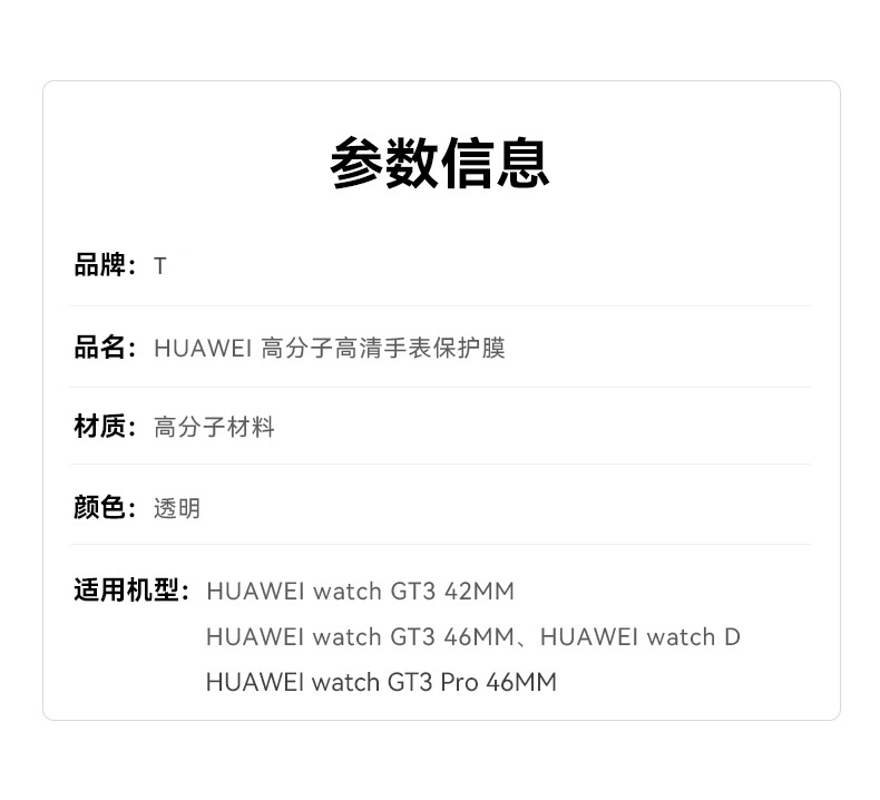 查看我的收藏>>HUAWEI WATCH GT 3 (42mm/46mm)WATCH D WATCH GT 3 Pro (46mm)高分子高清手表保护膜 一片装